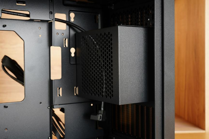 电源仓位支持ATX电源安装,并且电源仓高度由3档可以调节,不同的高度适应不同的电源、显卡、水冷长度需求,这个就看个人选择了。