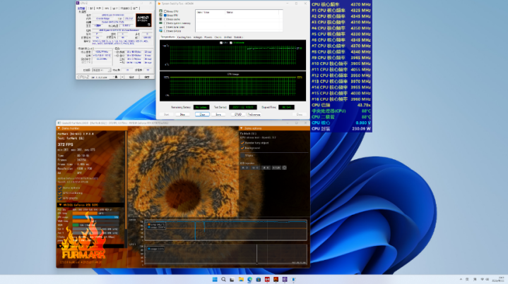极限温度测试方面,开启主板默认PBO,在持续双烤10分钟后R9 9950X3D核心温度稳定在88°C,全程没有降频的出现,CPU温度总体表现尚可;GPU的温度则维持在了64°C,表现非常出色。可以看到闪鳞G600的散热能力还是可以的,得益于360水冷规格的支持,中高端的CPU应付起来也不是问题。