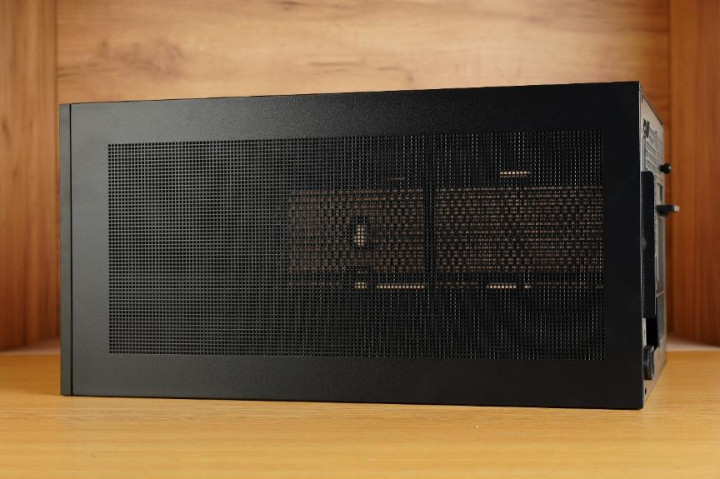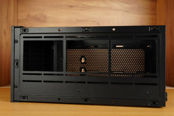 机箱内部最大支持M-ATX主板;最高可以支持170mm高度的塔式风冷;显卡槽位为4槽,兼容长度为400mm以内的显卡,这个长度以及足够放入目前市面上大部分的3风扇显卡了。机箱整体尺寸维持在了427mm×220×365mm(L×W×H),体积依然非常紧凑。